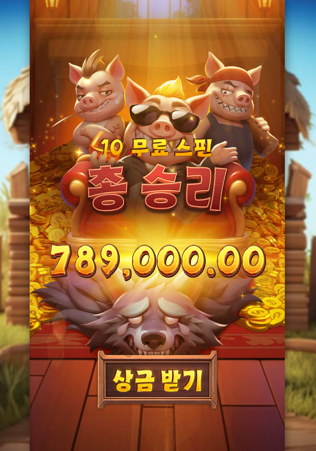 돼지 삼형제 게임 귀여운데 배당은 무섭네요 늑대 나올 때마다 조마조마했는데 결과는 대만족입니다 ㅅㅅㅅ