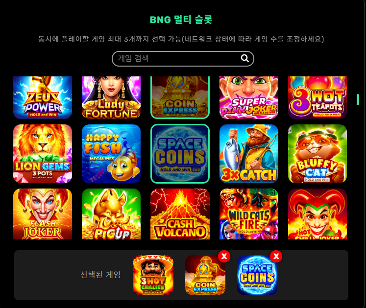이거 진짜 물건이네요 ㄷ 곰돌이야 0 153 03.27 23:48 동시에 세 개까지 돌릴 수 있어서 지루할 틈이 없습니다 저는 오늘 칠리랑 기차랑 스페이스 이렇게 골라봤는데 조합 짜는 재미도 있네요 부운고 게임 종류도 많아서 이것저것 섞어 돌리면 수익 구간 금방 잡힙니다