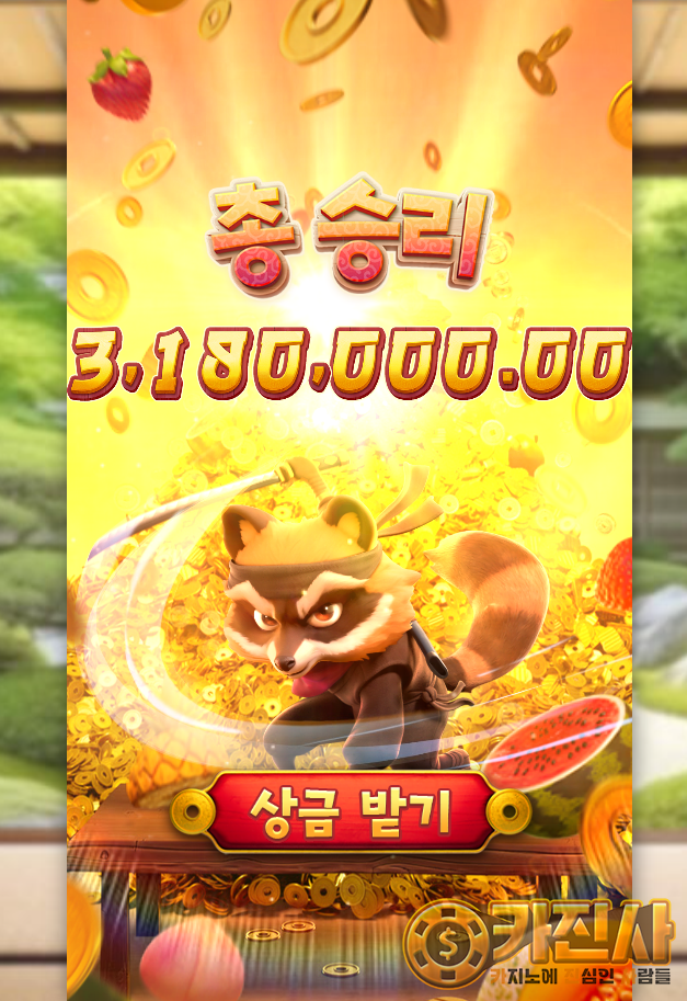 와 과일 썰더니 318장 시원하게 터지네 PG소프트 너구리 겜 타격감 미쳤음 오늘 고기 먹으러 간다 다들 건승해라