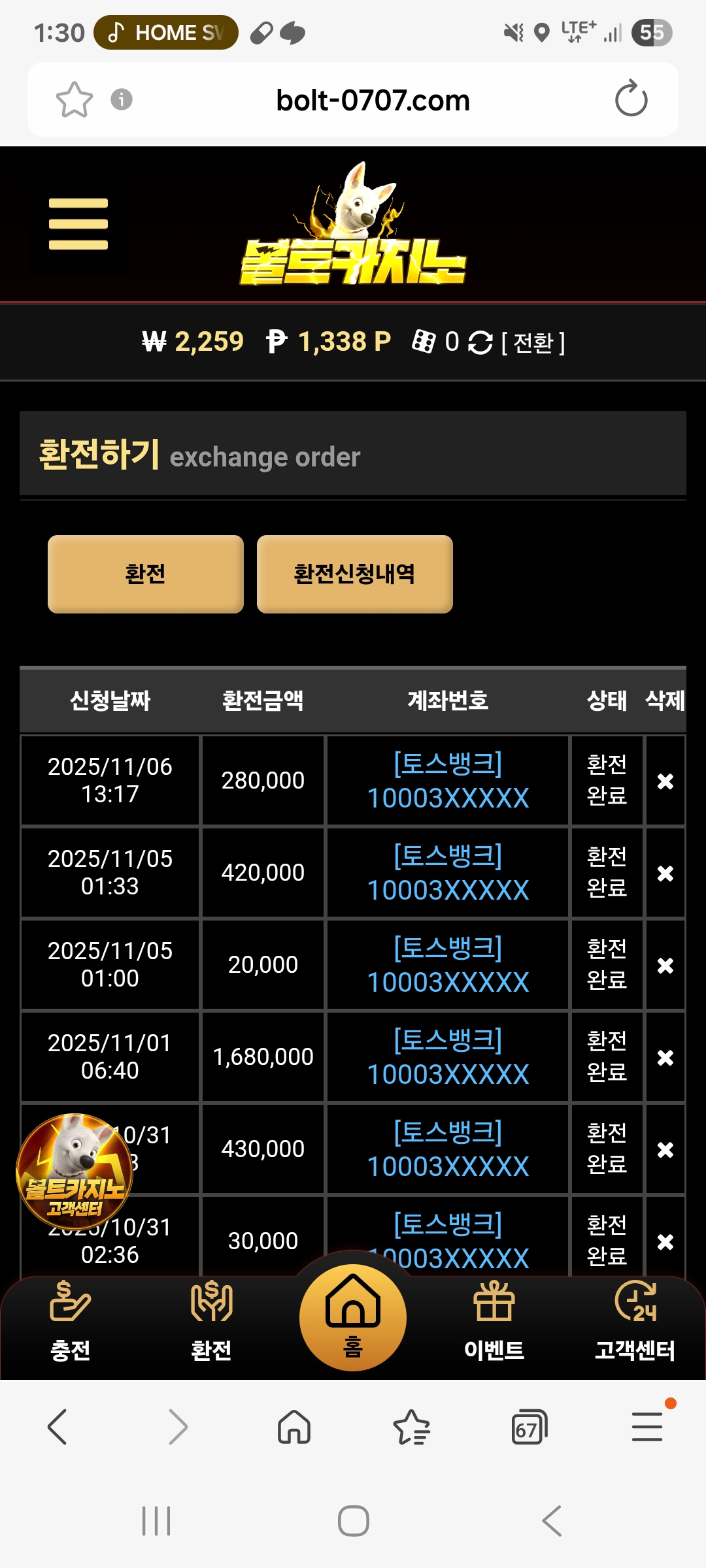 출금합니다.