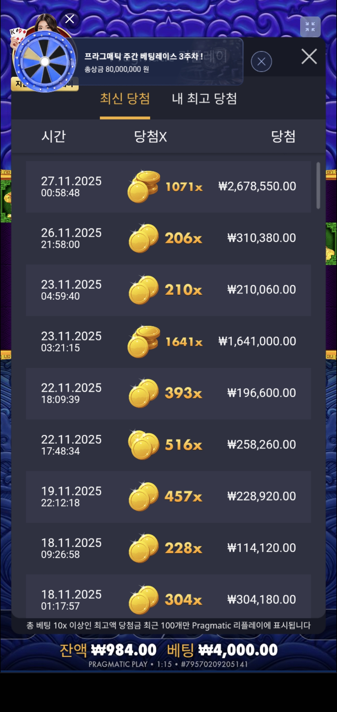 오랜만에 잭팟