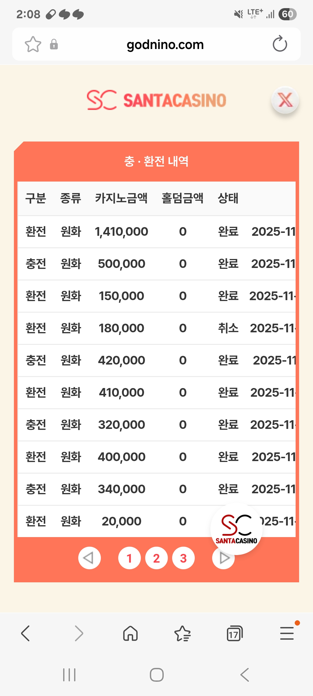 오랜만에 산타 입금했는데