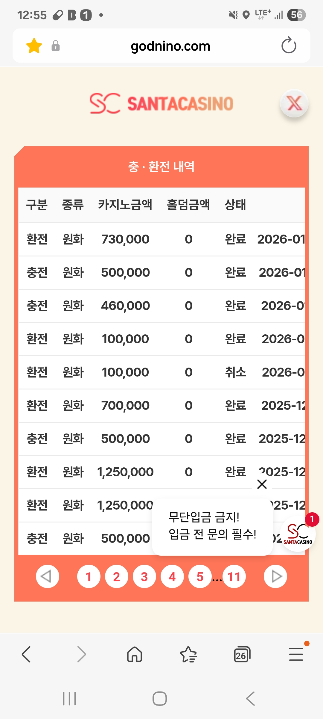 50입 73출금성공