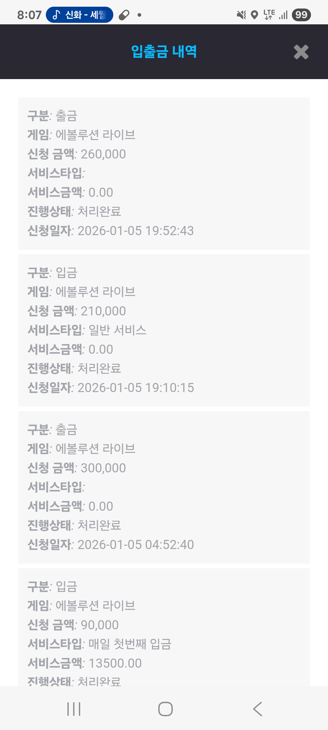 5만이기고 출금합니다.