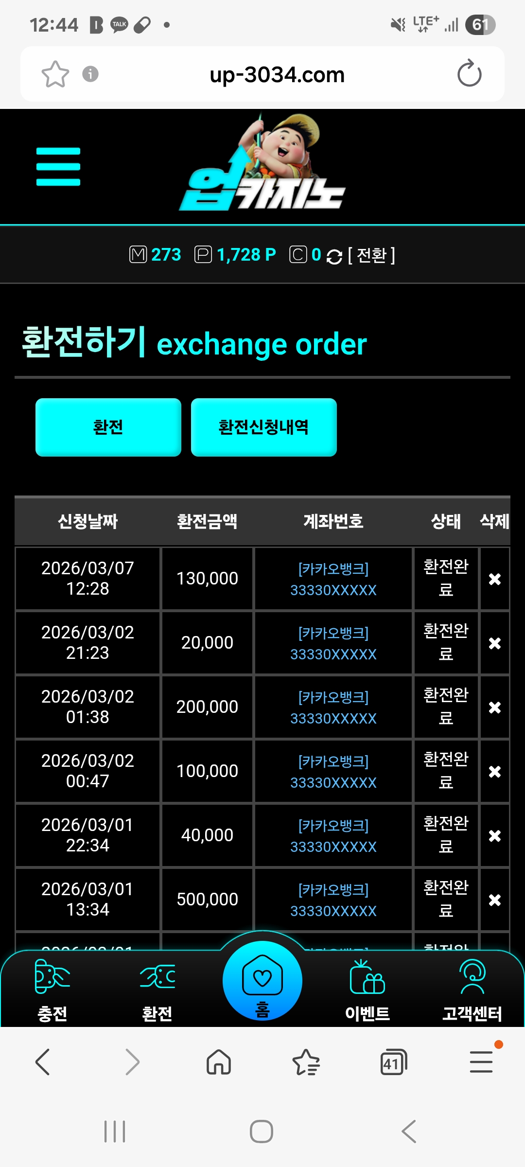21입 13출금합니다.