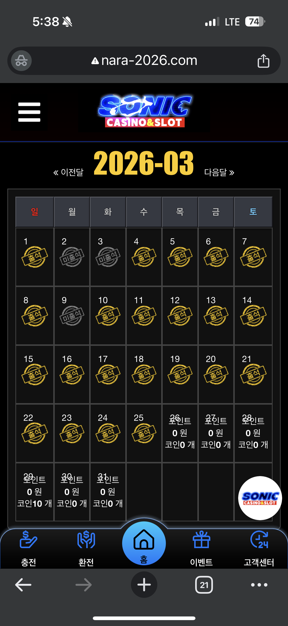 소닉 출첵했습니다